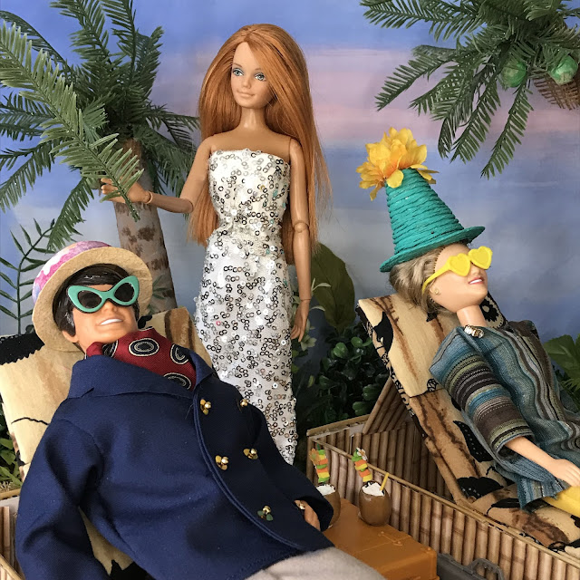 The castaways' bamboo huts (above) and the table top (below) were made using custom scrapbook paper I made. You can use this link to get yours: Bamboo Print Paper